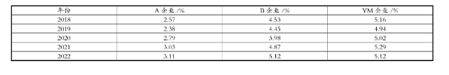 表1 A企業(yè)與B企業(yè)、YM企業(yè)采購成本占營業(yè)收入比率